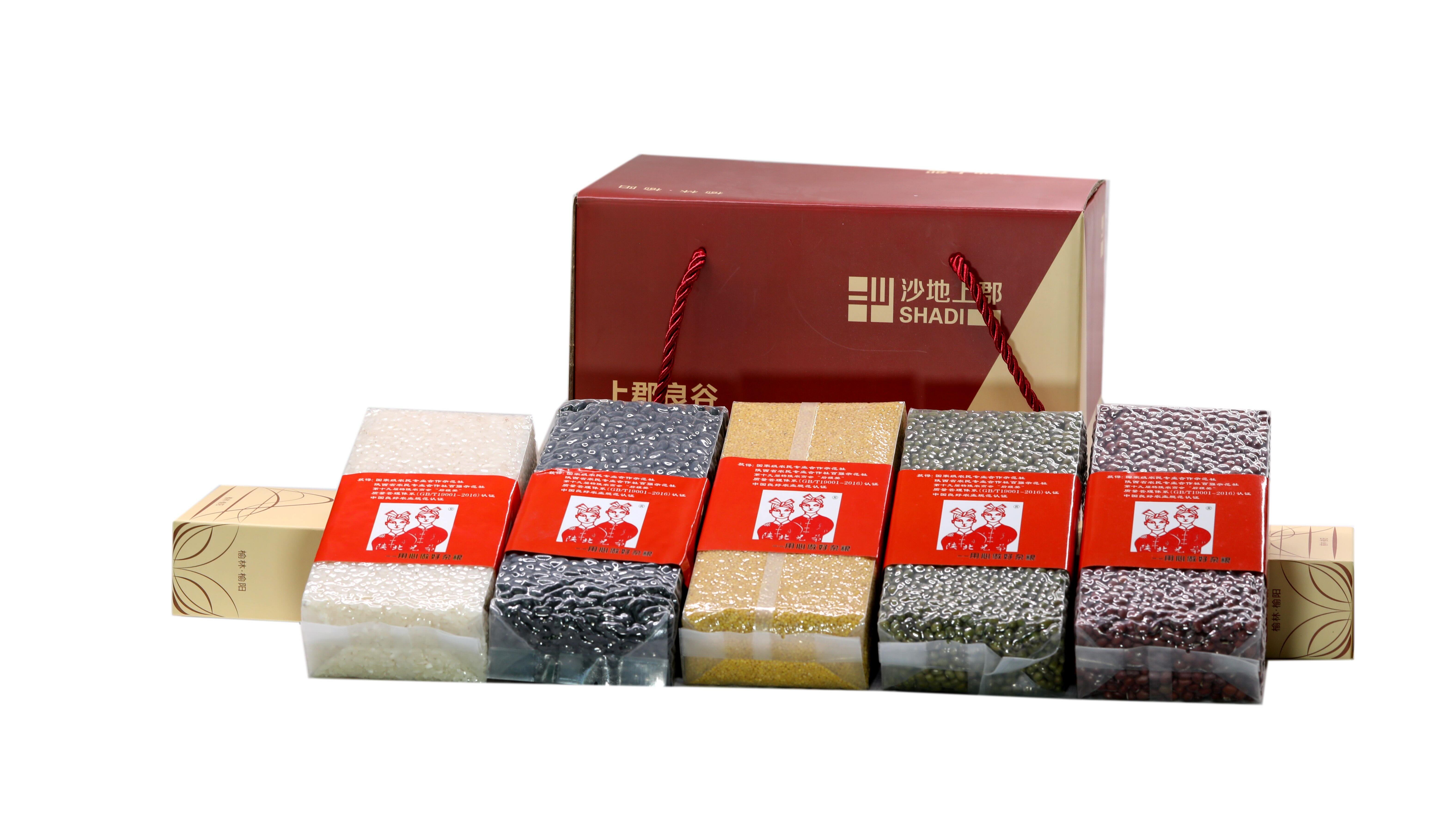 沙地上郡上郡良谷5kg*1盒(大米500g*4小盒、小米500g*2小盒、绿豆500g*2小盒、黑豆500g*1小盒、红豆500g*1小盒-产品溯源-沙地上郡产品追溯中心-沙地上郡产品追溯中心